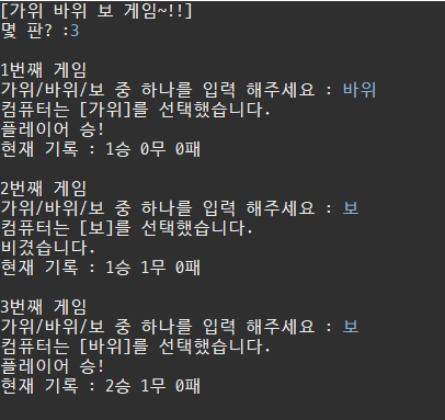 // 컴퓨터는 [바위]를 선택했습니다.