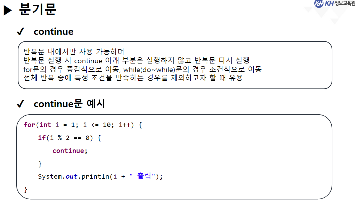 // continue : 다음 반복으로 넘어감