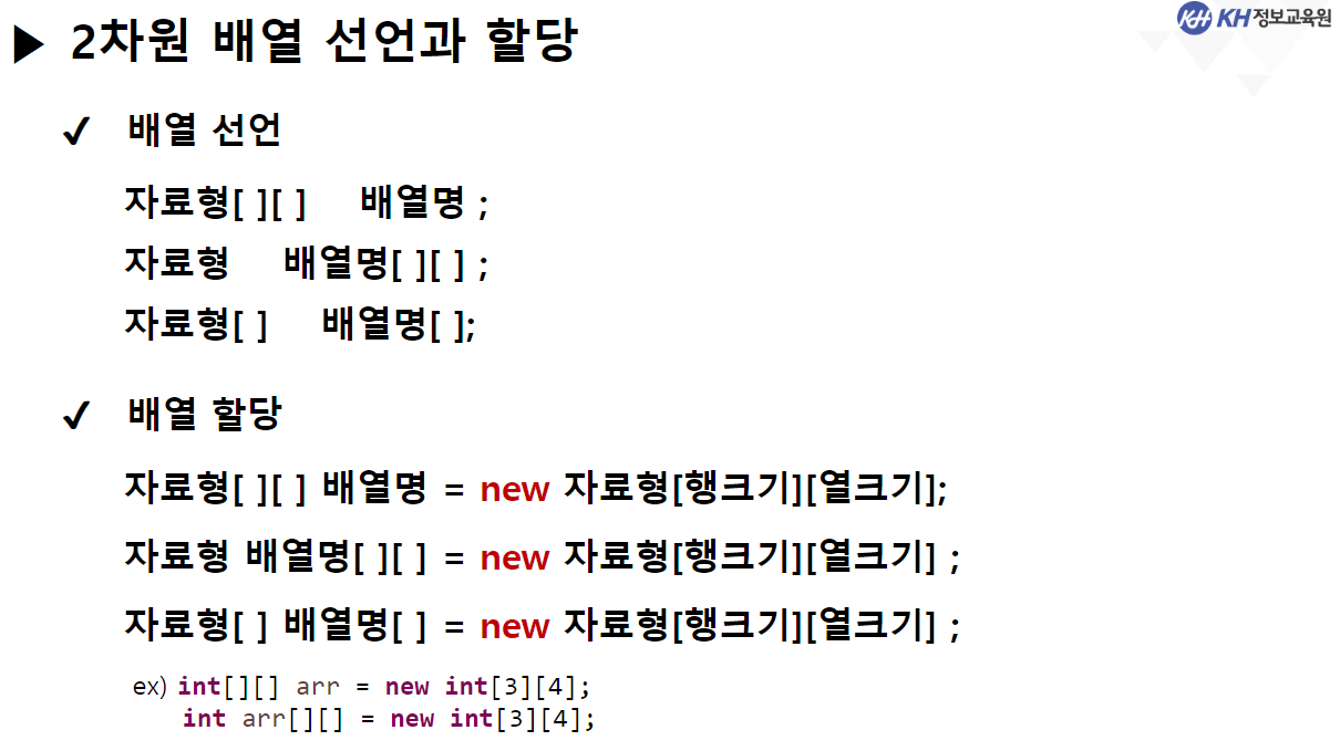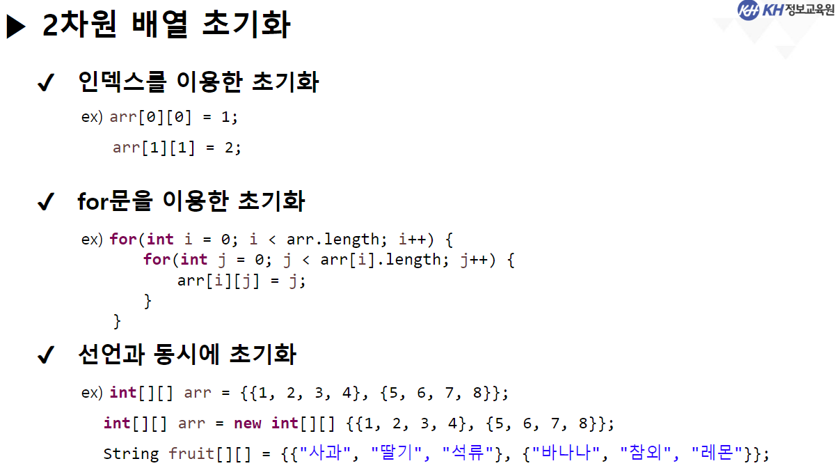 for(int row = 0; row < arr.length; row++) { // 행 반복(0,1)