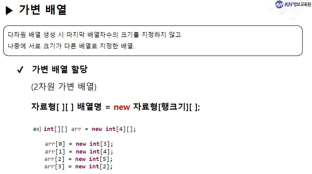 System.out.println(arr[1].length); // 3 (열길이)