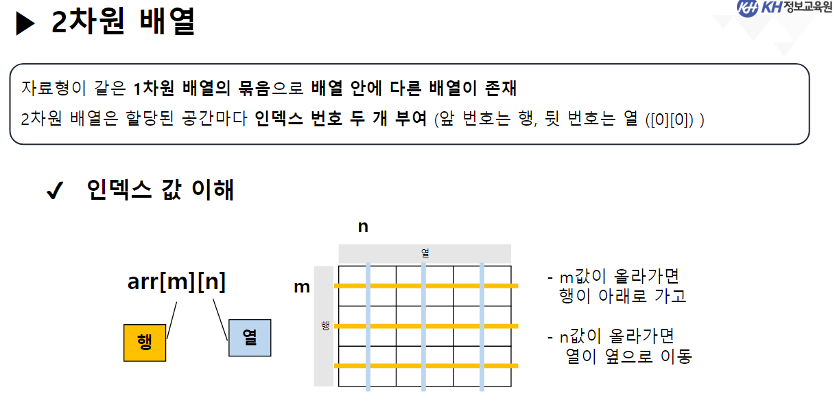 * - 자료형이 같은 1차원 배열을 묶음으로 다루는 것