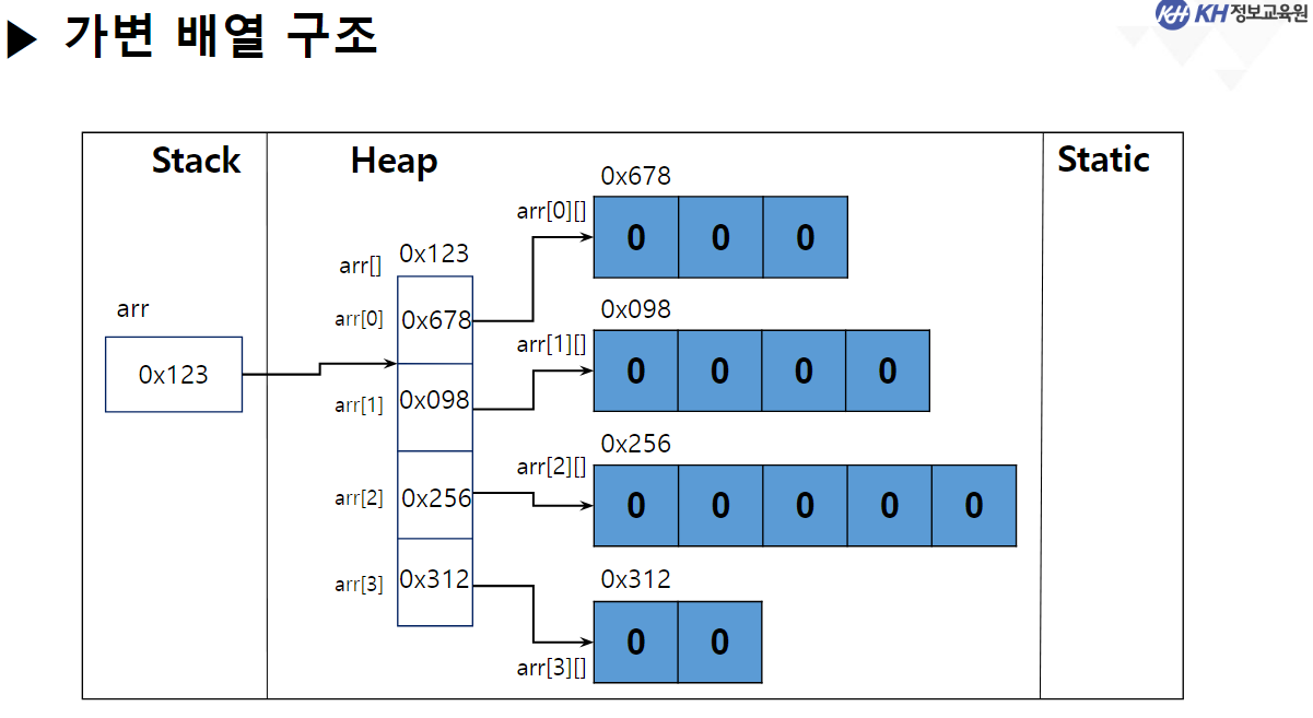 arr[0] = new char[3]; // 0행에 3열짜리 1차원 배열을 생성하여 주소값 저장