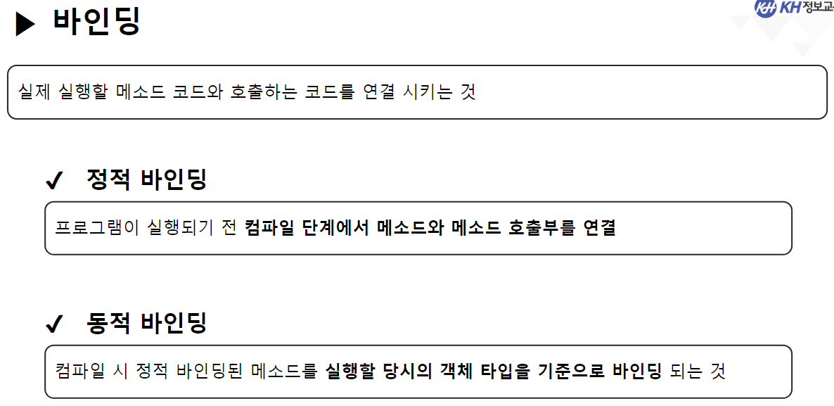 // -> "실행 시" 에는 자식(Spark)의 오버라이딩된 메소드와 바인딩 == 동적바인딩