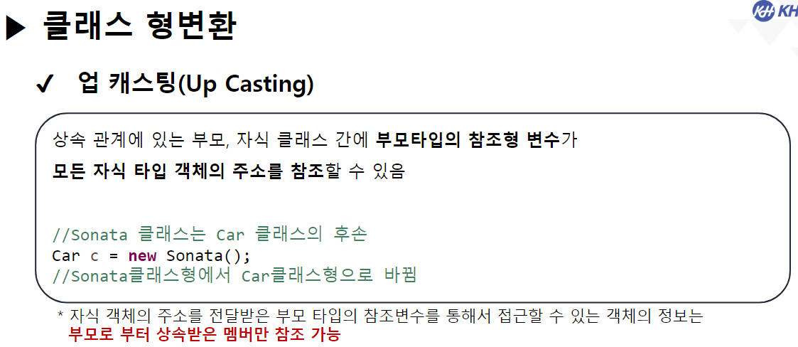 // 업캐스팅 적용 -> 부모 부분만 참조 가능한 상태