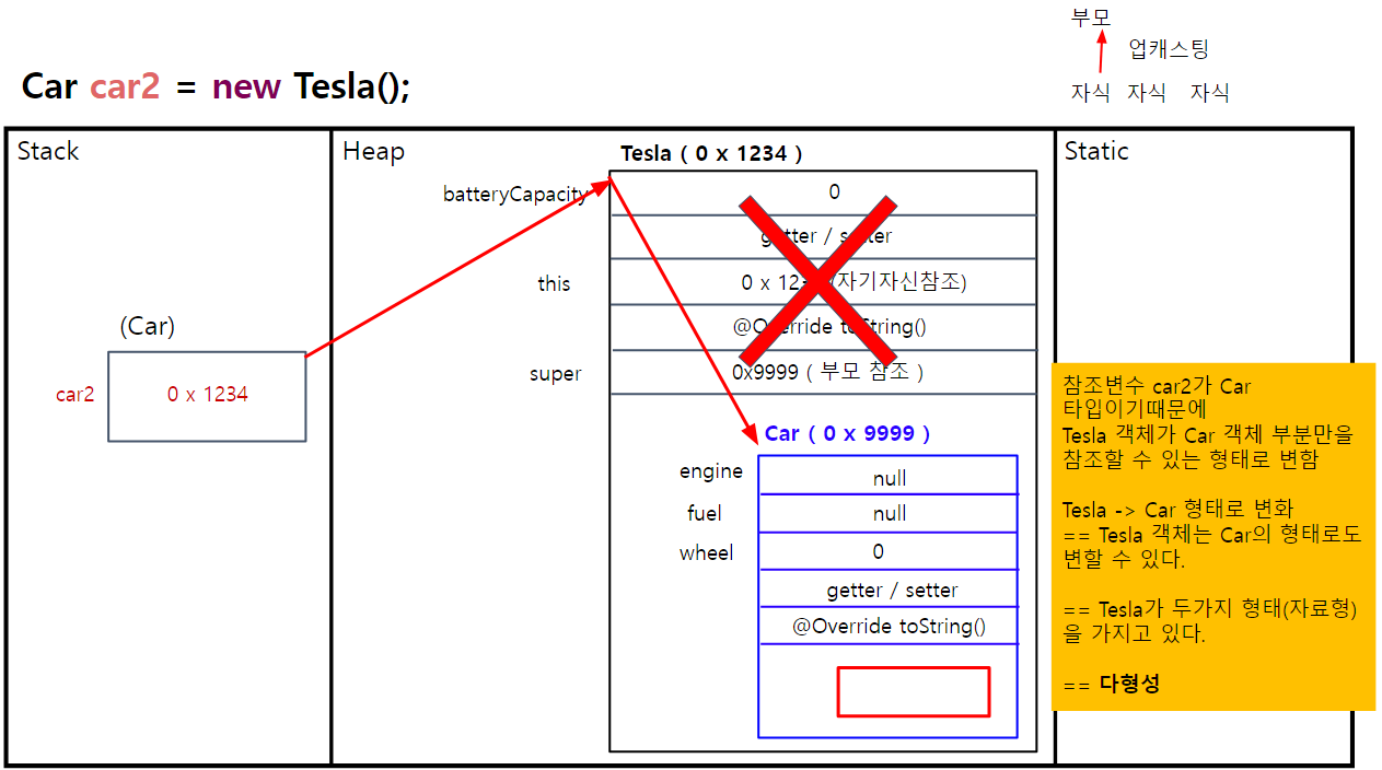 // Spark 참조변수로 Tesla를 참조하려고 하면 문제가 있음.