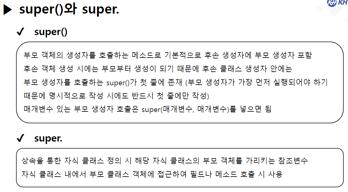 // 자식 객체의 본래 필드, 메소드를 사용 가능하게 한다.