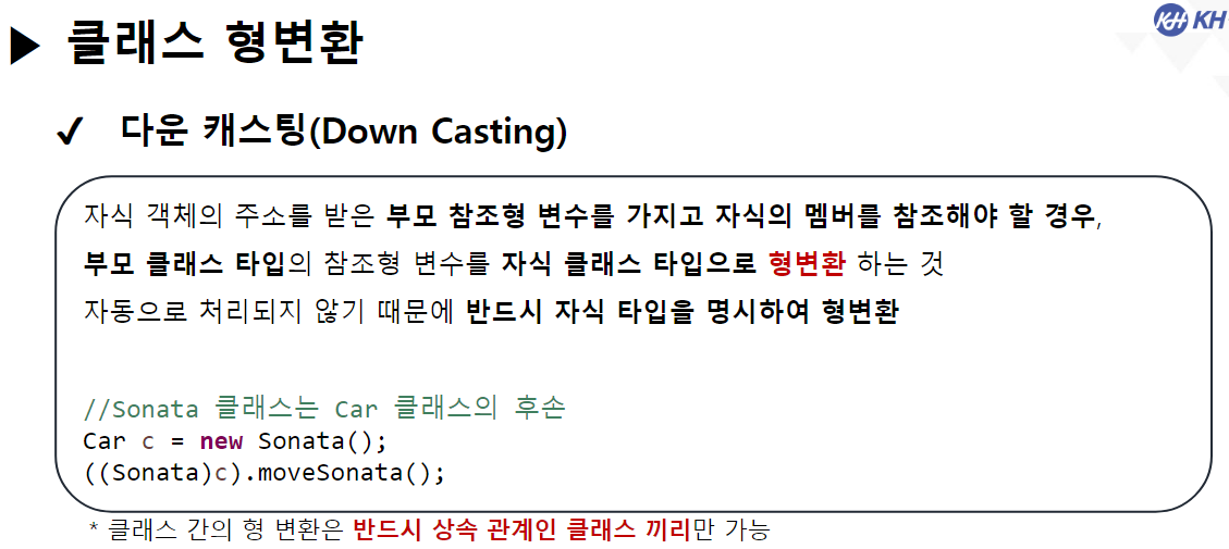 // 부모 타입을 자식타입으로 "강제 형변환"해서