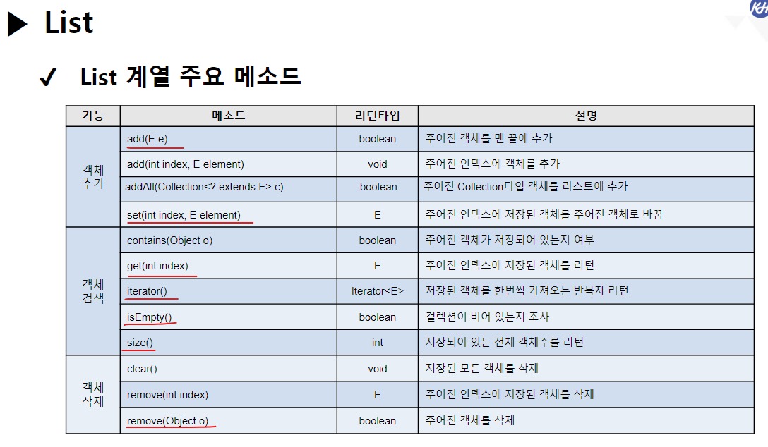 // java.util.List 인터페이스 : List에 반드시 필요한 필수 기능을 모아둔 인터페이스