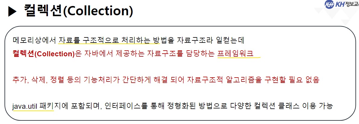 11_컬렉션 = 수집, 모아놓음(자바에서 제공하고 있는 자료구조 모음)