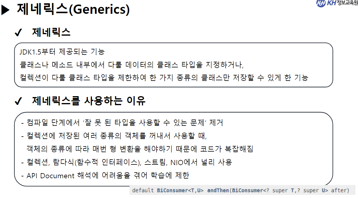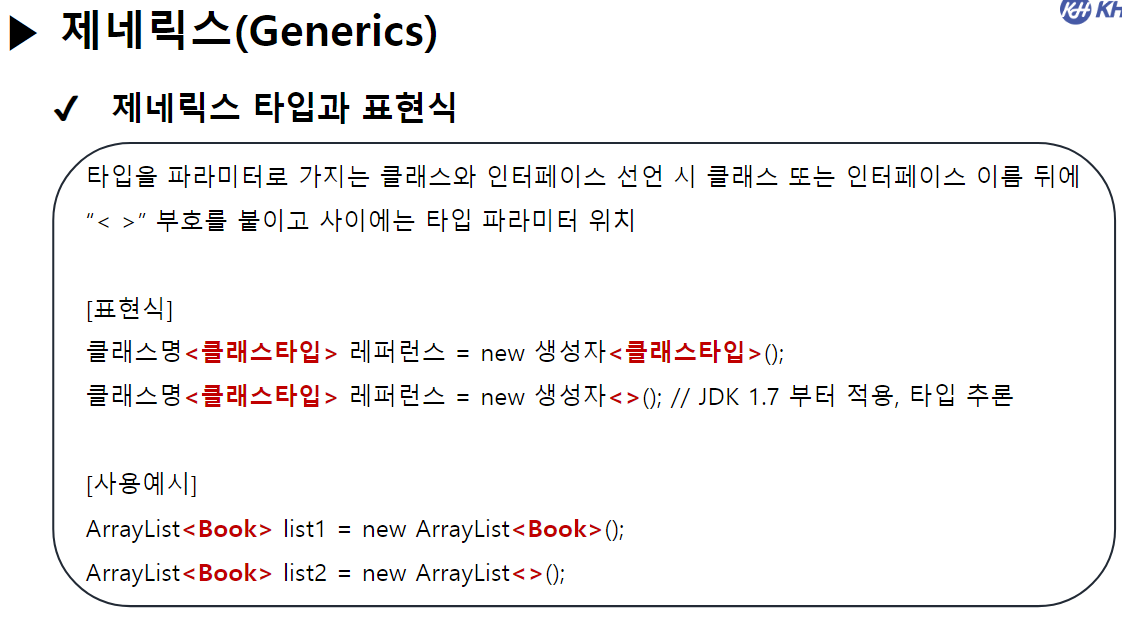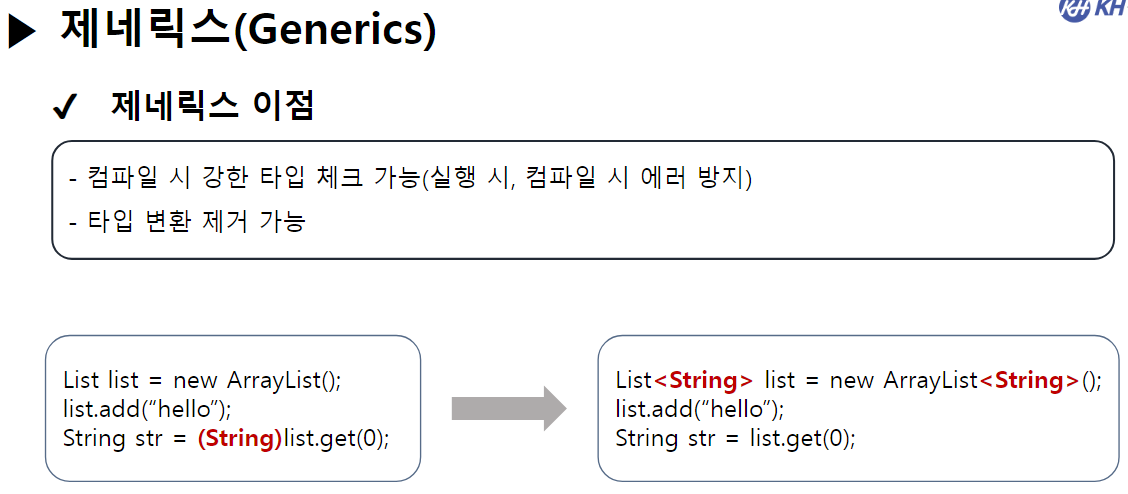 // -> 컬렉션에 저장되는 객체 타입을 한가지로 제한