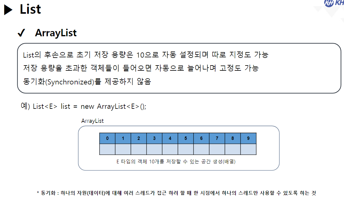 // java.util.ArrayList : 배열 형태 List (가장 대표적인 List 자식 클래스)