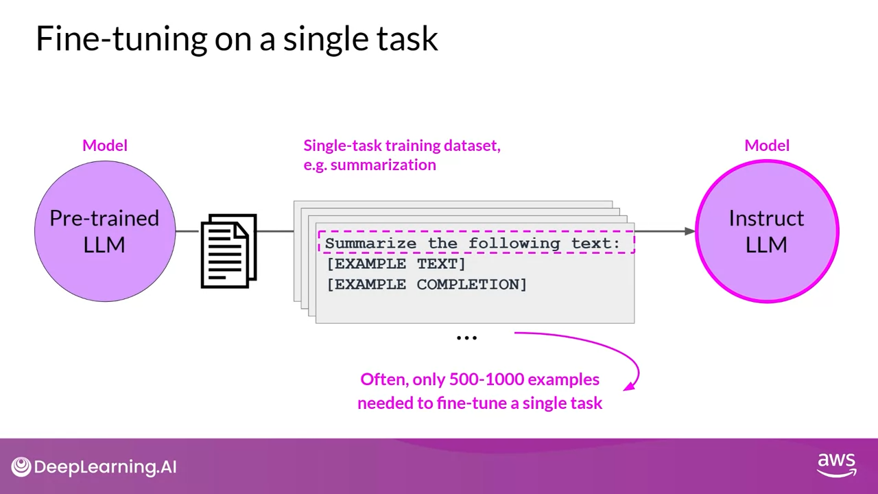 Multitasking을 잘 fine-tuning하려면 여러 작업에 걸쳐 50~100,000개의 예제가 필요할 수 있으므로 학습하는 데 더 많은 데이터와 컴퓨팅이 필요합니다.