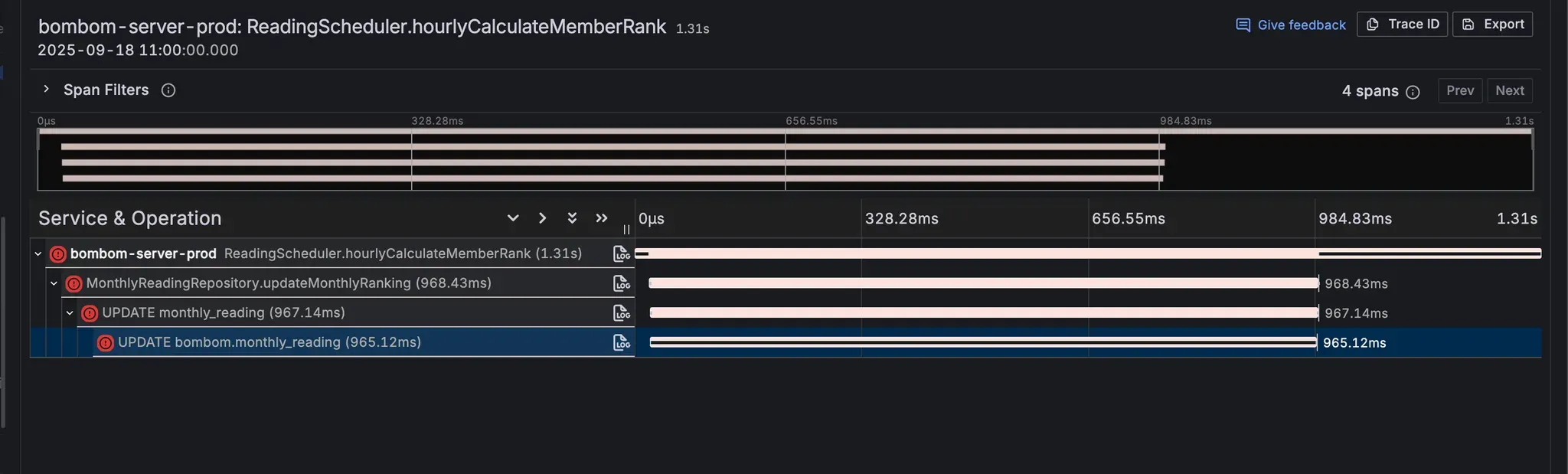 스케줄러 스레드는 10분마다 monthly_reading의 전체적인 랭킹을 갱신하는 작업을 진행한다.