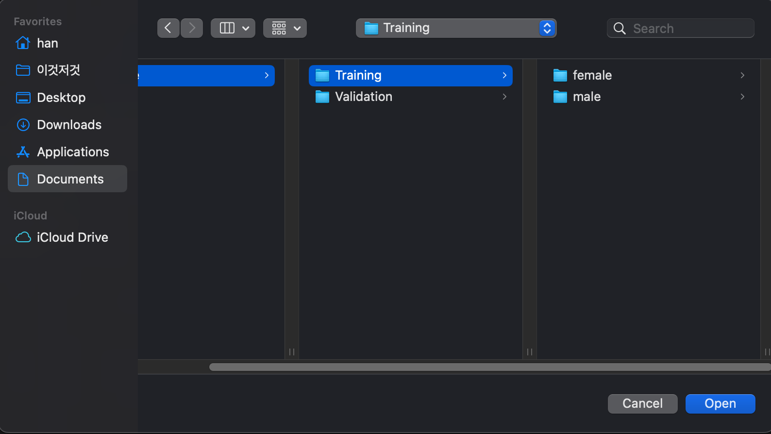 Training Data를 선택하여 Training 폴더를 넣어줍니다.