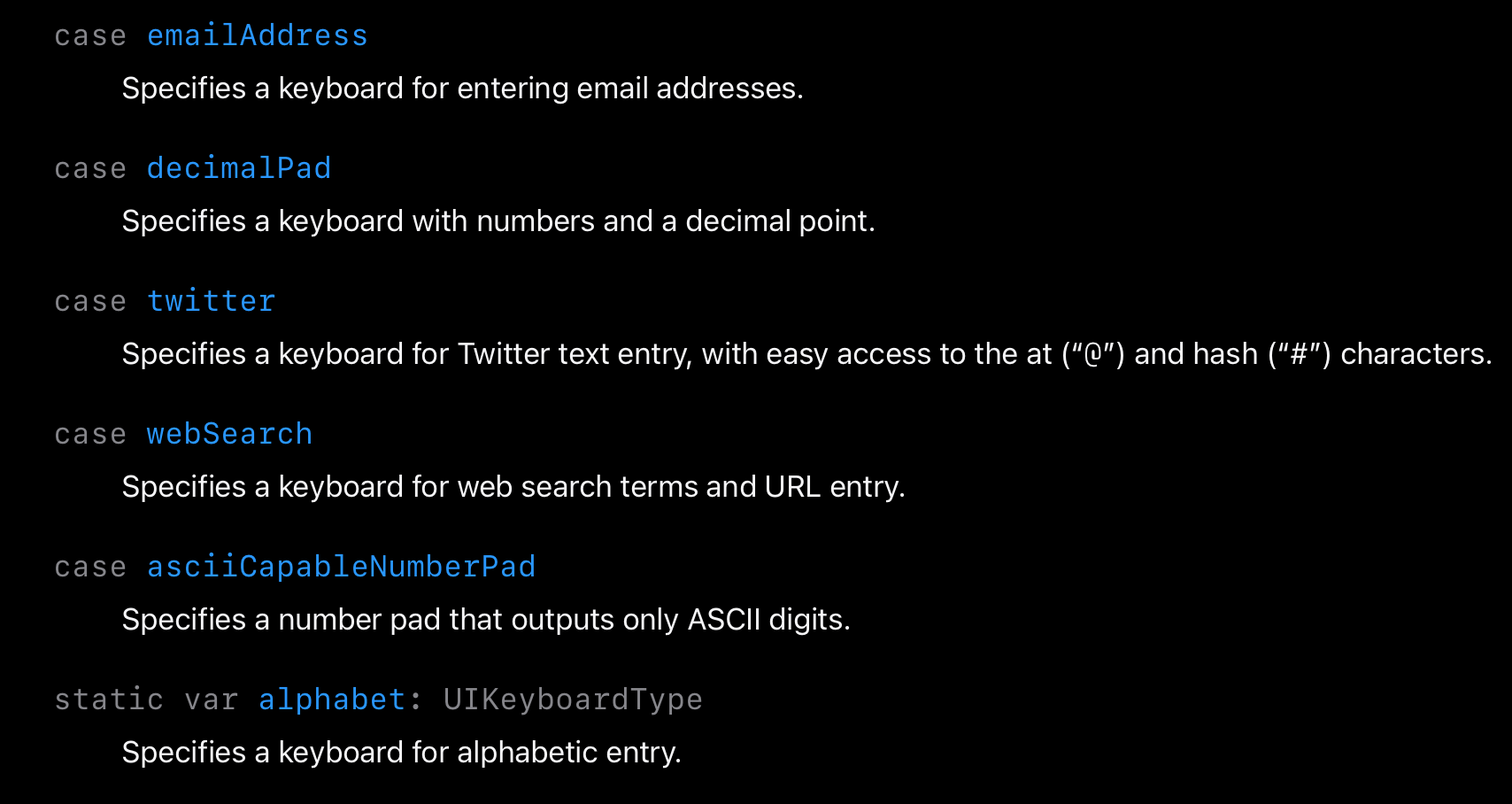 https://betterprogramming.pub/12-shades-of-keyboard-types-in-ios-a413cf93bf4f