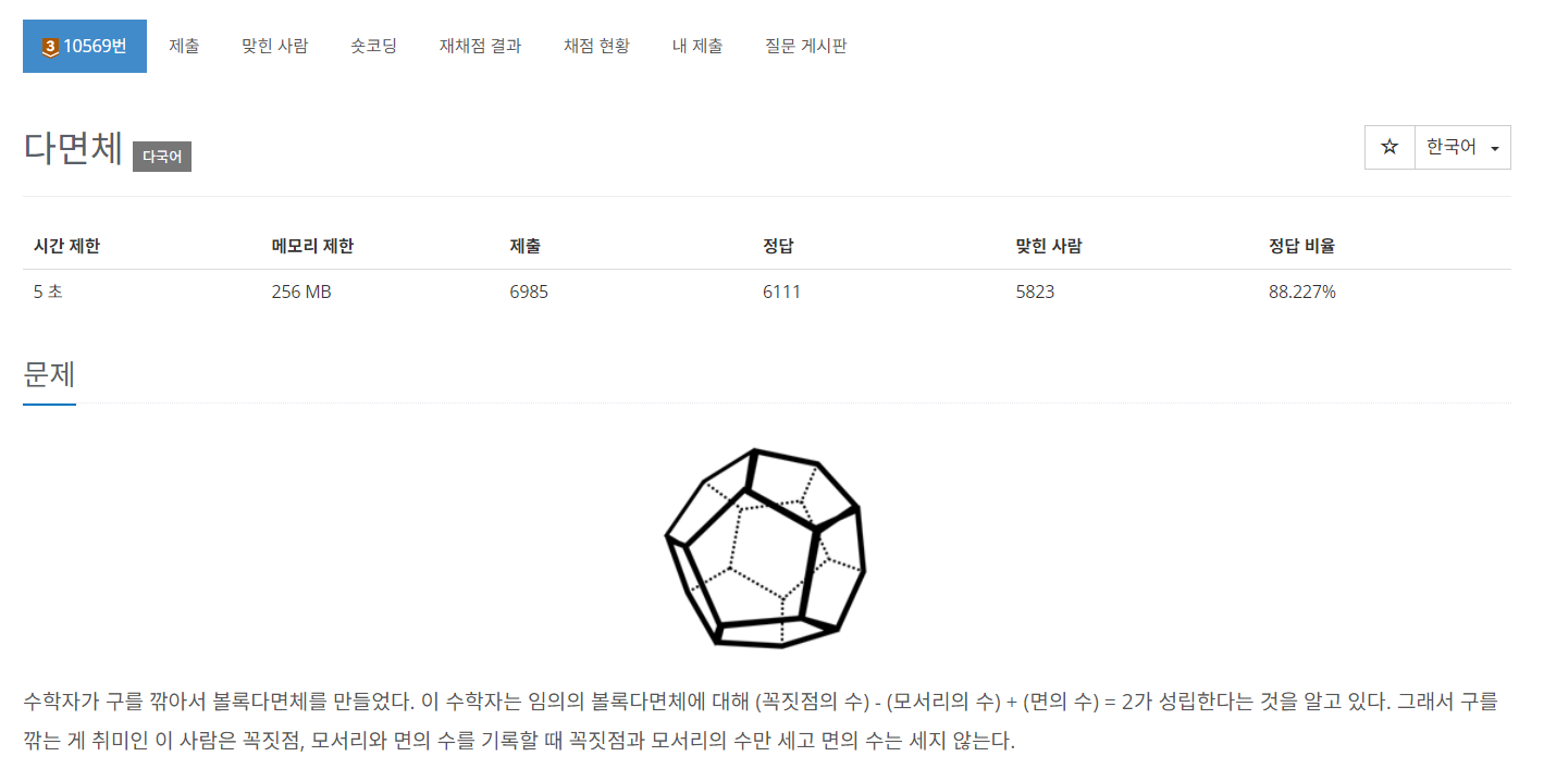 면의 개수 = 모서리 개수 + 2 - 꼭짓점 개수