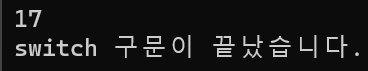 case로 지정해놓은 경우 이외에 다른 수가 들어오게 되면 switch 구문은 실행되지 않는다