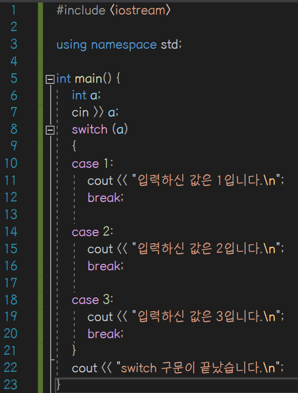 선택지가 3개를 넘어가게 된다면 switch 구문을 사용하는 것이 효율적이다