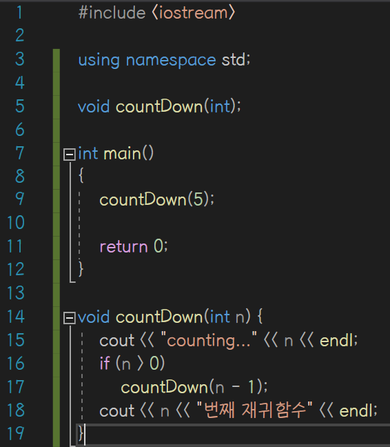 C++에서 함수가 자기 자신을 호출하는 것