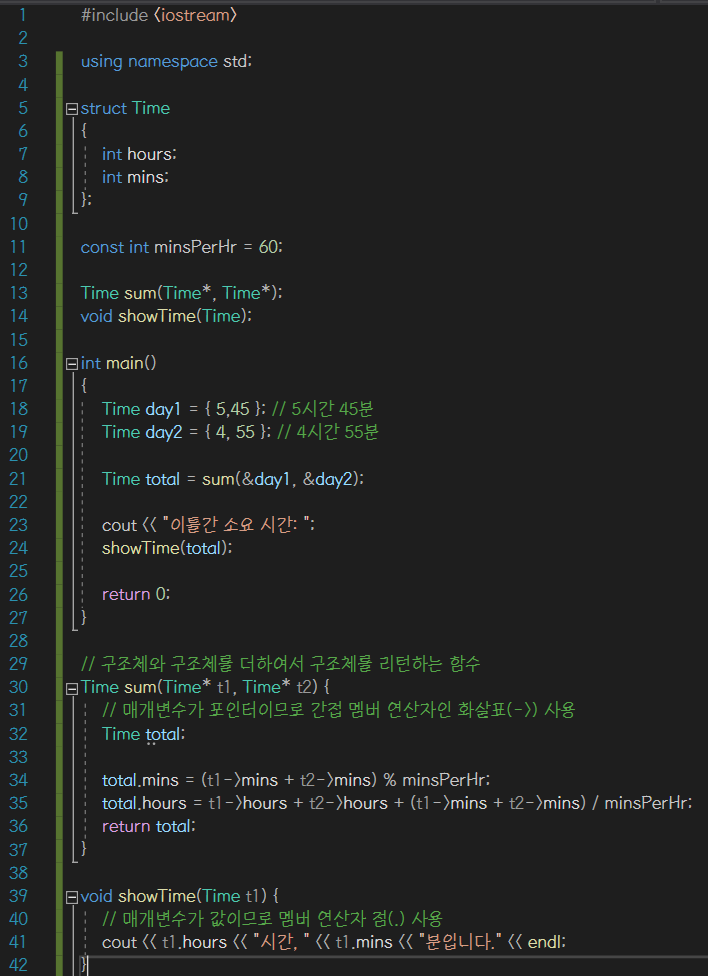 C++에서는 배열을 제외한 모든 데이터형을 리턴할 수 있다