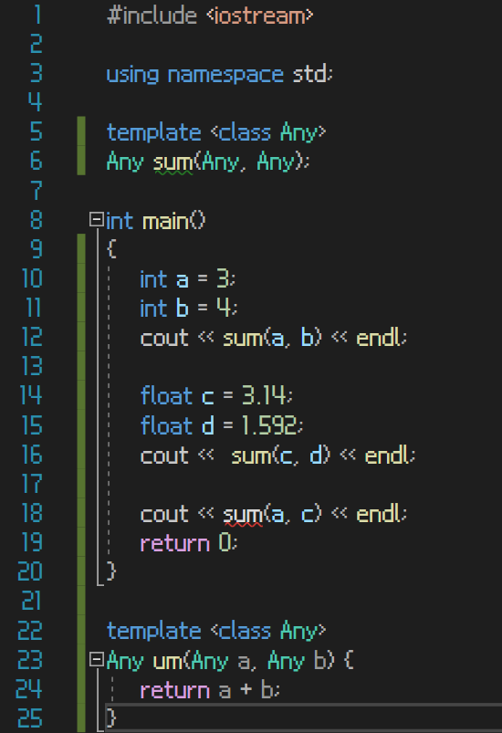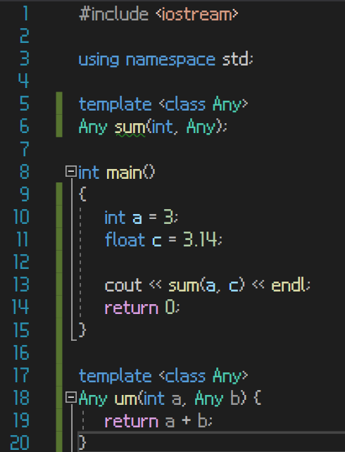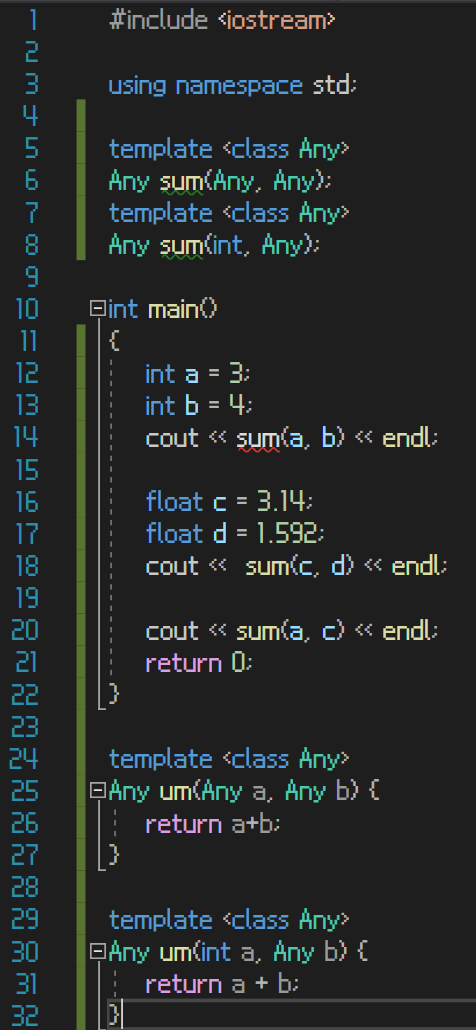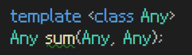 템플릿 Any를 통해서 Any형 변수 a와 Any형 변수 b의 값을 리턴하는 sum이라는 함수를 만들었다
