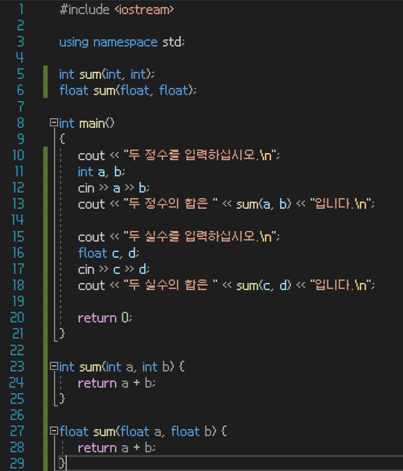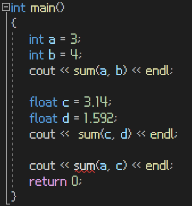 그러나 sum(a, b)에서 오류가 발생하는 이유는 오버로딩을 사용할 수 없는 2번의 상황이기 때문이다