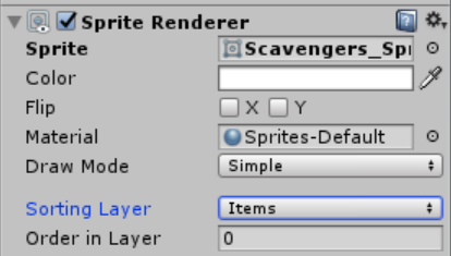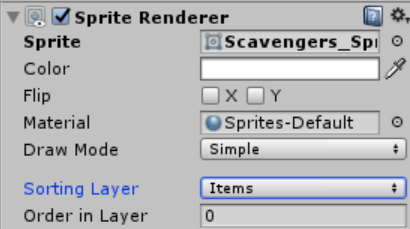플레이어와 적을 막아야 하므로 Sorting Layer를 Items로 설정한다