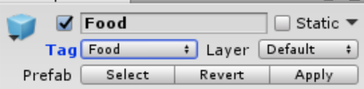 음식도 플레이어가 먹었는지 여부를 감지해야 하기 때문에 Box Collider 2D를 "Is Trigger"가 켜진 채로 사용한다