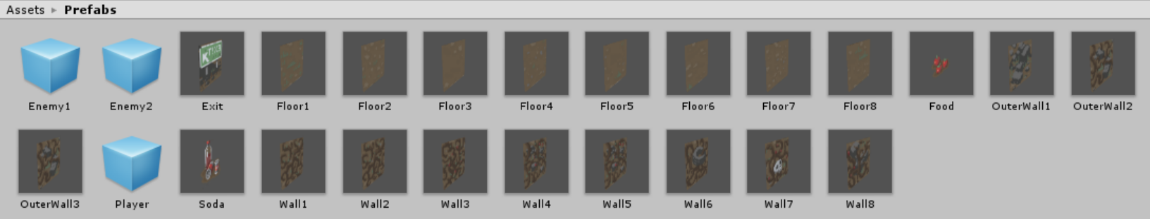 Sprite의 이미지만 계속 바꿔가며 벽 Prefab들을 생성한다