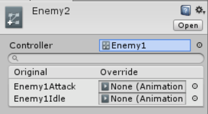 두 적은 같은 두 상태(Idle, Attack)를 사용하기 때문에 animater overrode controller를 생성한다