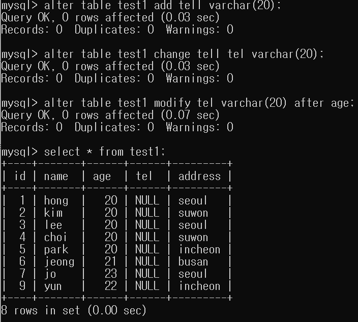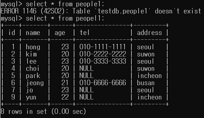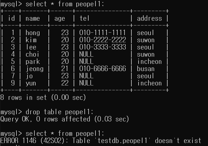 people1 테이블이 잘 삭제되어 출력되지 않는 것을 확인할 수 있다.