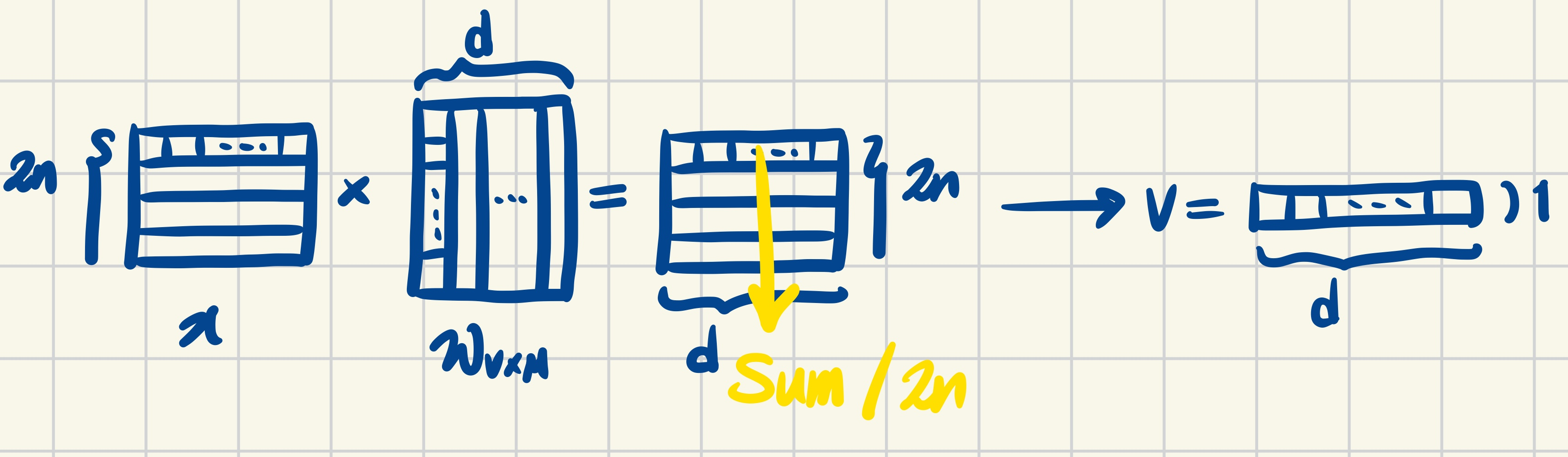 v๋ projection layer์์์ ๋ฒกํฐ์ ํํ์ด๋ค. 1xd์ shape(d๋ ์์์ ์ค๋ช
