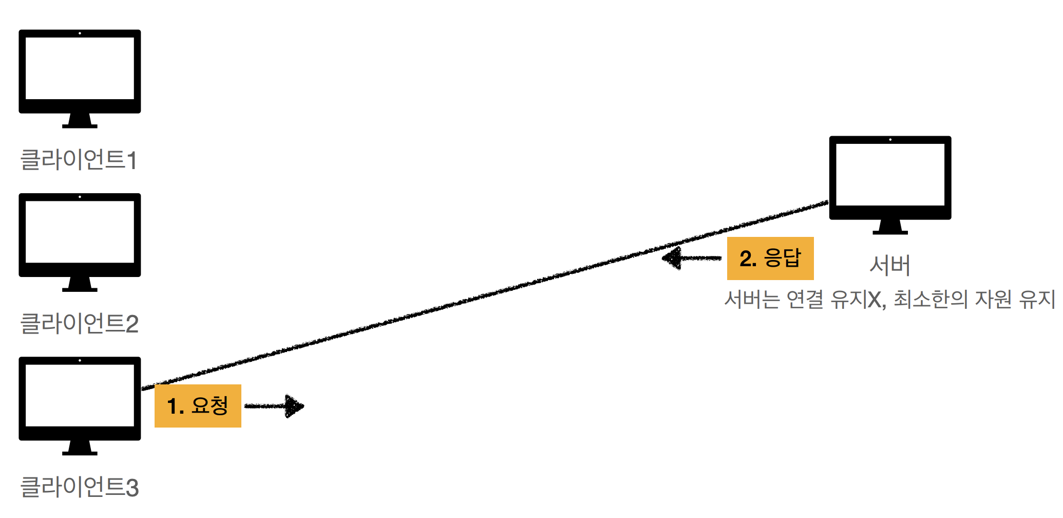 무상태 프로토콜은 서버가 클라이언트의 상태를 보존하지 않는 것이다.