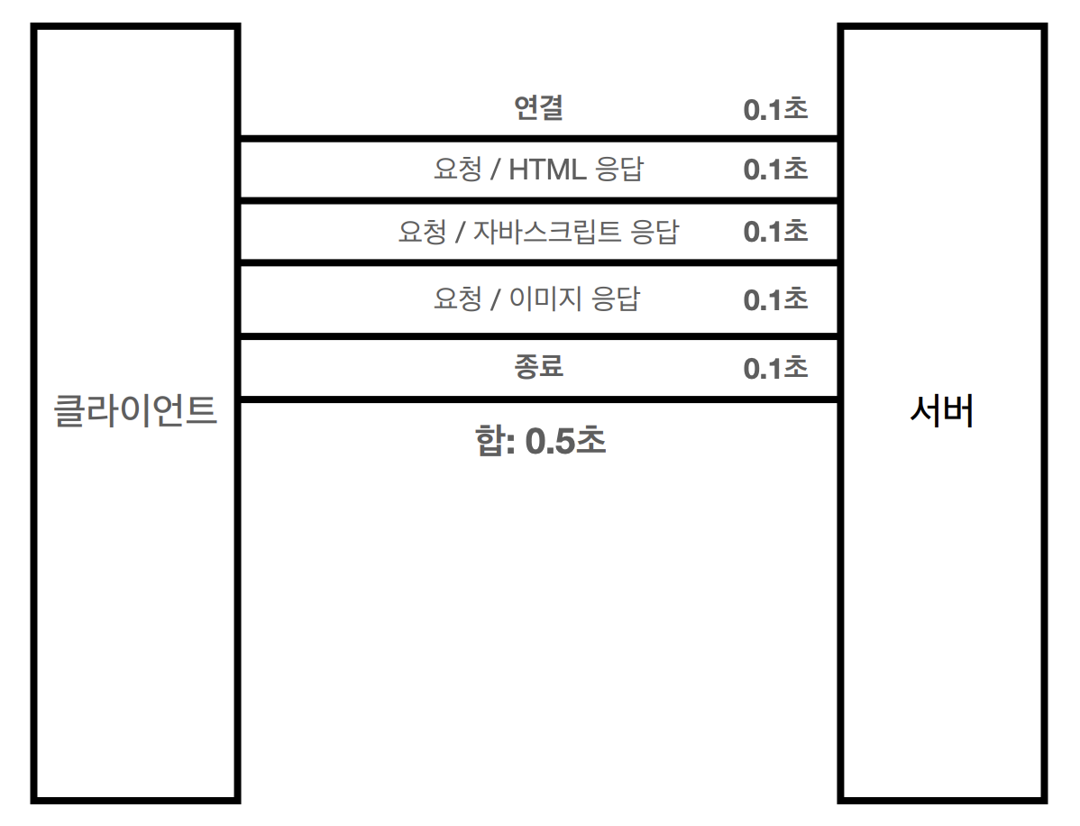 또한 웹 브라우저로 사이트를 요청하면 일반적으로 HTML 뿐만 아니라 다양한 자원이 함께 다운되기 때문에 각각의 자원들이 요청될 때 시간이 추가적으로 더 들수 있다.