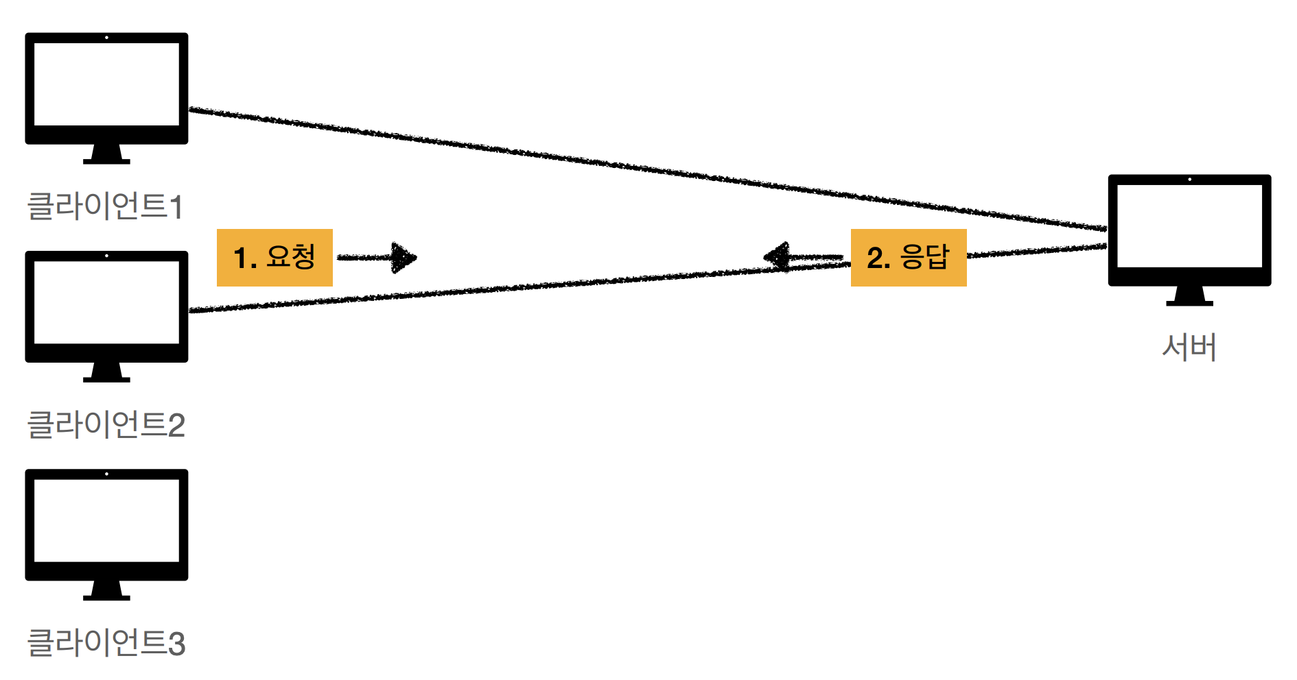 클라이언트는 서버에 요청을 보내고, 응답을 기다리며 서버가 요청한 대한 결과를 만들어서 응답하는 방식이다.