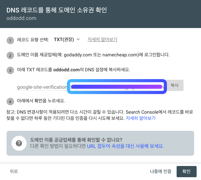 <meta name="google-site-verification" content="여기에_구글에서_제공하는_인증코드_입력" />