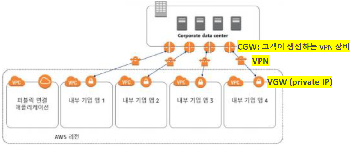 : VPC의 프라이빗 리소스에 액세스하기 위해 가상 프라이빗 게이트웨이를 사용한다.