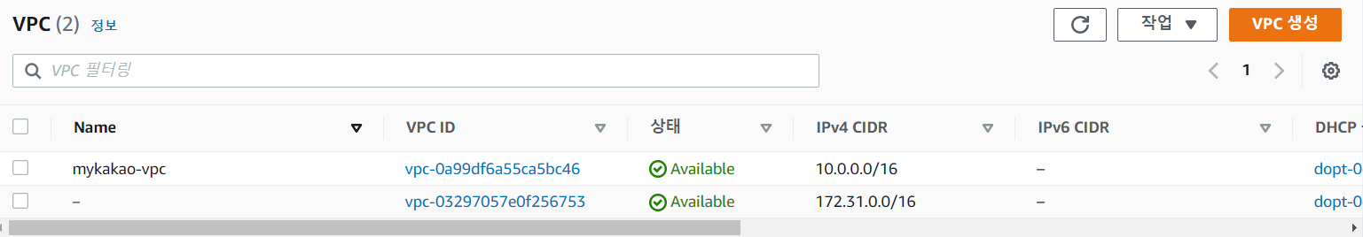 - 만든 VPC 선택
