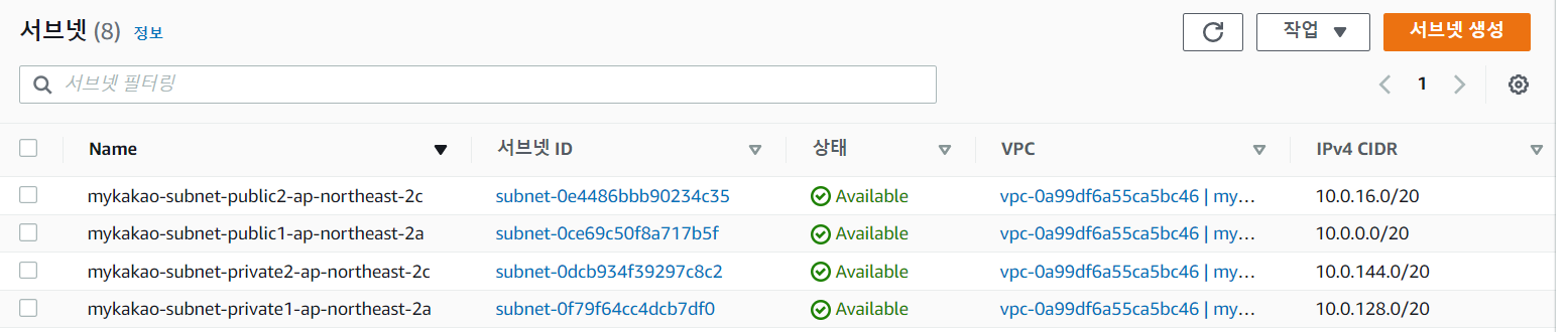 서브넷 생성 확인