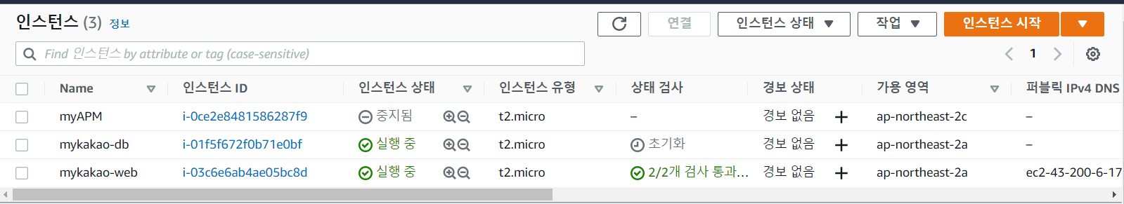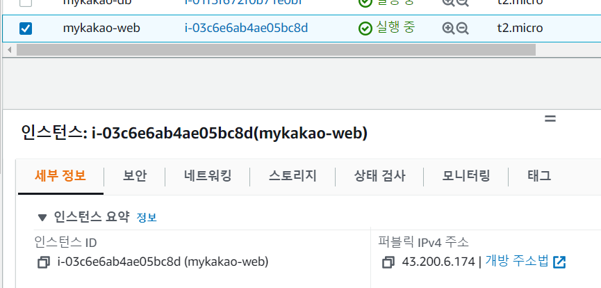 mykakao-web의 퍼블릭 주소로 putty 연결
