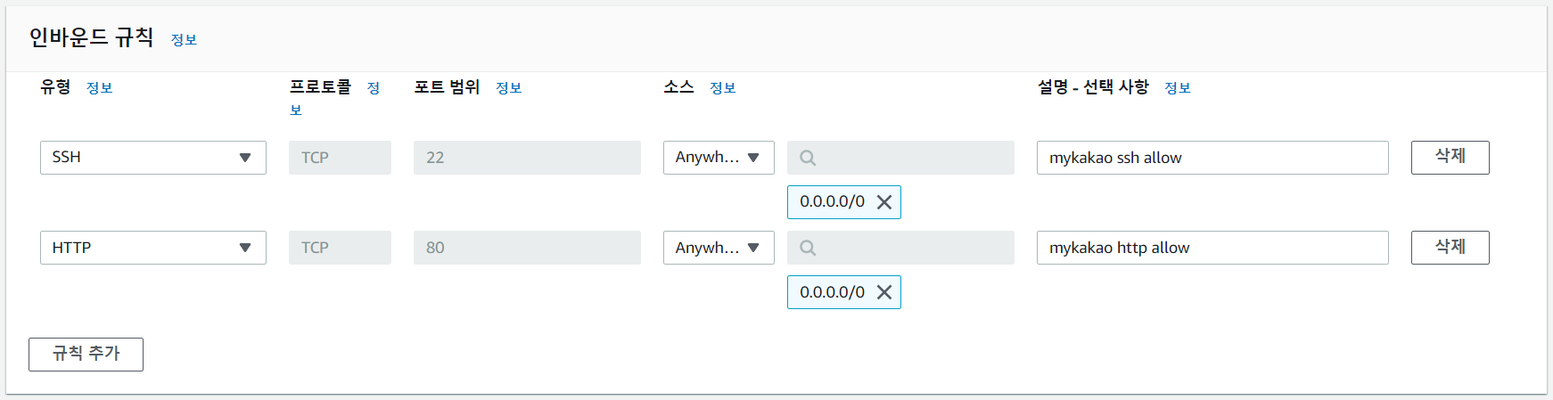 SSH, HTTP 허용
