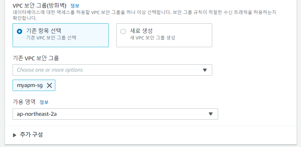 보안 그룹 선택
