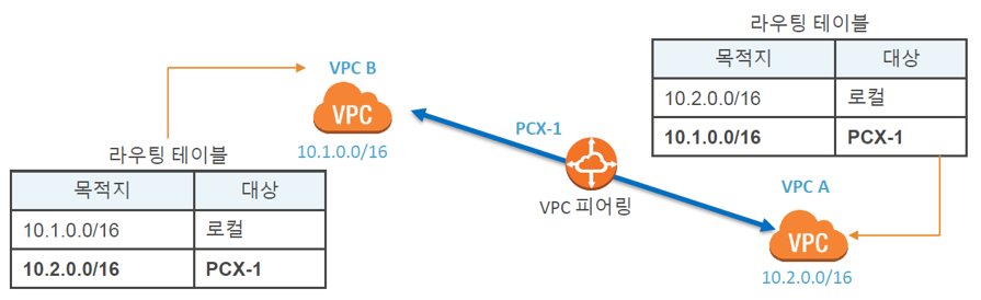 : 양쪽 VPC간의 동의를 통해 구성된다. peering 요청과 peering 승인 후 route table을 작성한다.