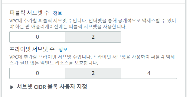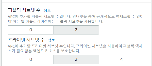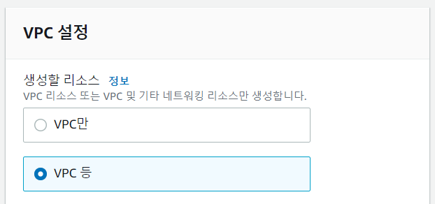 VPC 등 선택