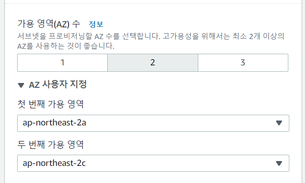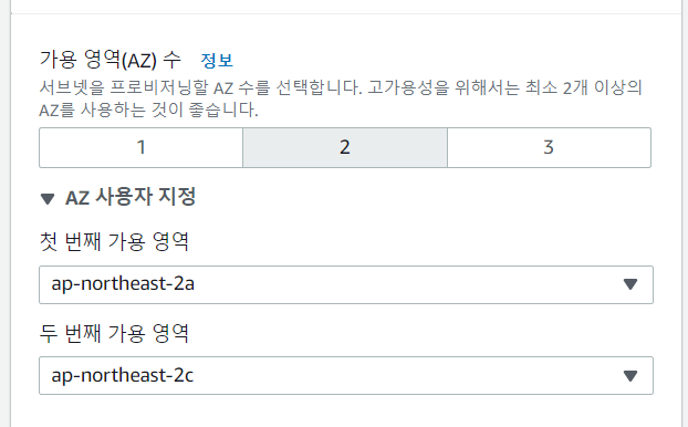 가용 영역 수 설정