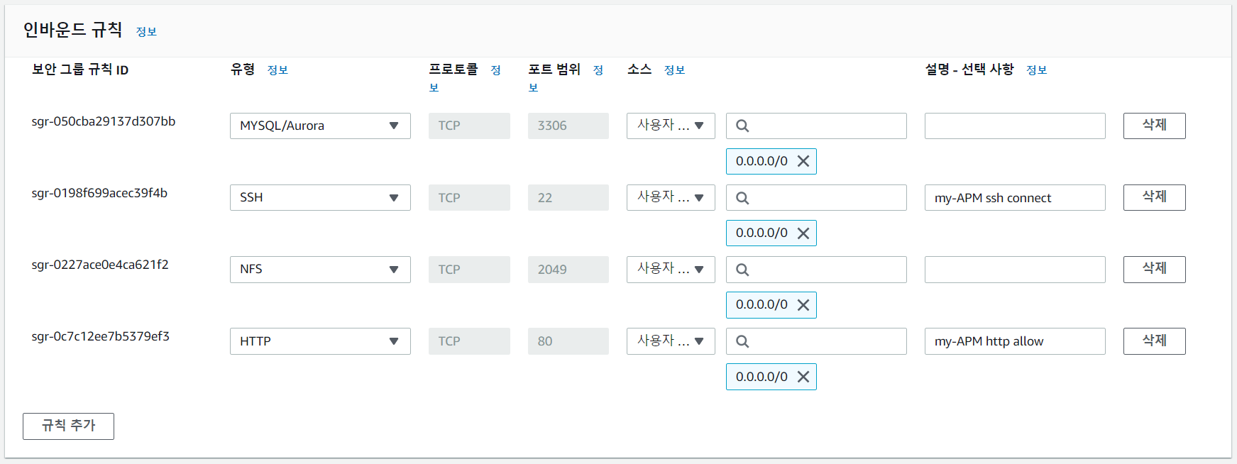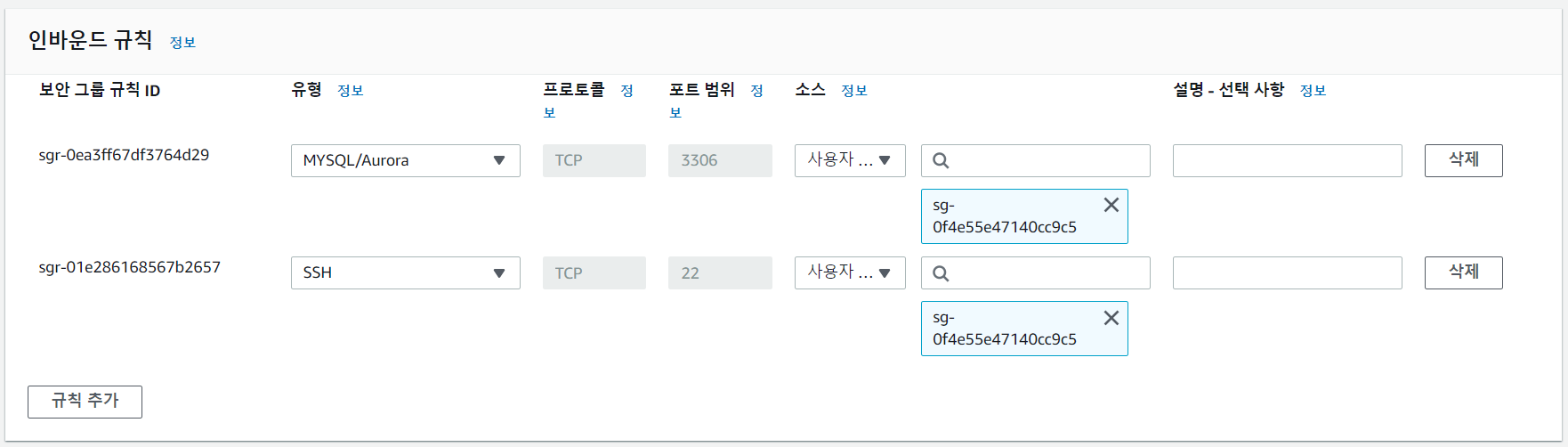 db 보안 그룹 인바운드 규칙 편집