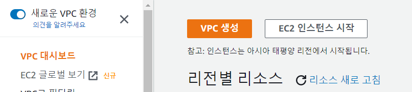 VPC 생성 클릭
