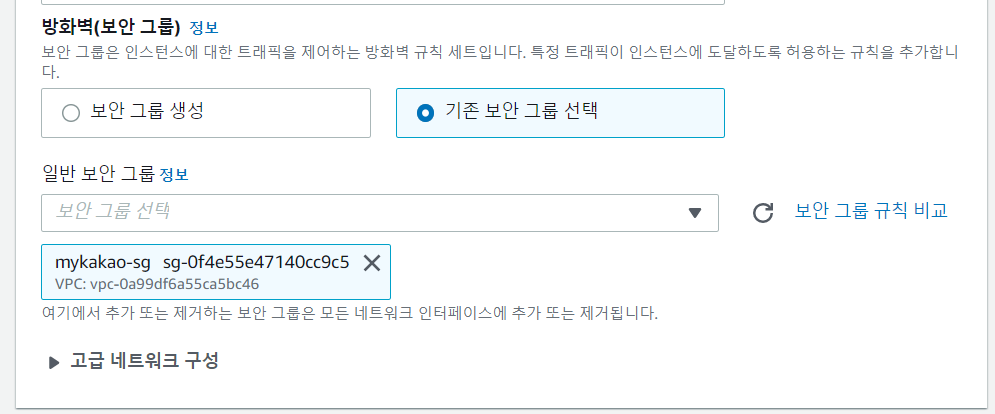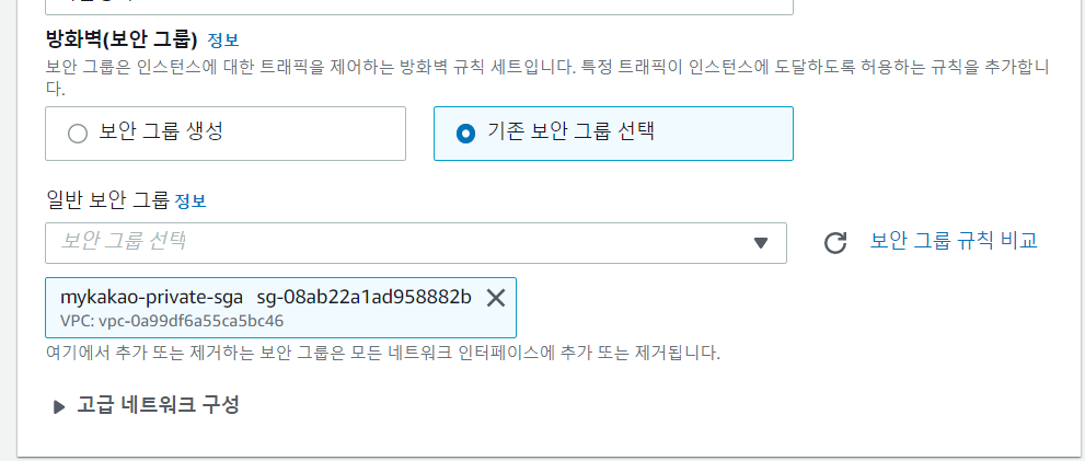 보안 그룹도 생성한 보안 그룹으로 선택