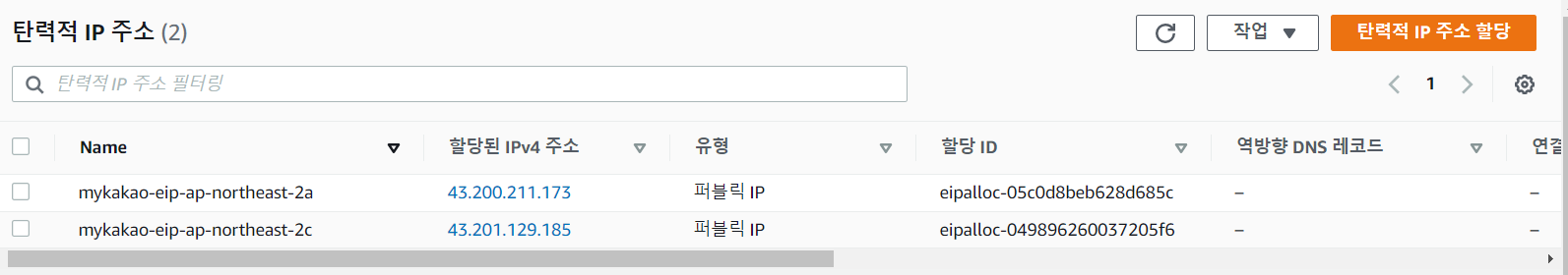 탄력적 IP도 생겼다.