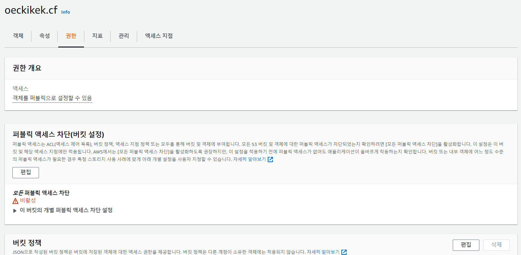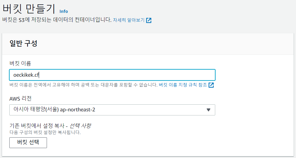 반드시 버킷 이름=도메인 이름이어야 라우팅이 가능하다.